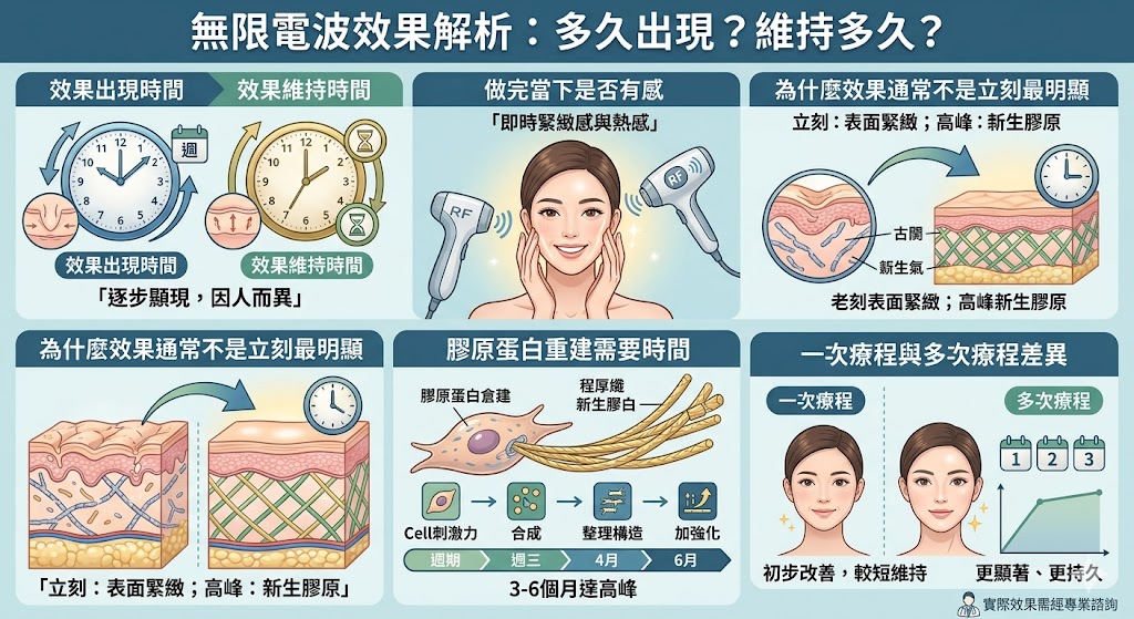這也是為什麼大多數院所都會把無限電波定位成漸進式改善型療程,通常要觀察數週到更長時間,才比較能看出穩定差異。